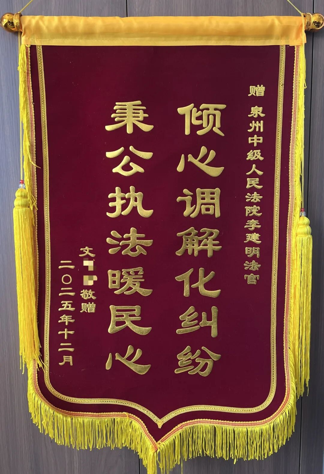 “感谢李法官给我做主,挽回了我的损失!”当事人文某一边说着,一边打开一面印着“倾心调解化纠纷 秉公执法暖民心”几个烫金大字的锦旗,在冬日暖阳中递到了宁夏法院来泉州中院交流学习的李建明法官的手中,当事人用最质朴的方式,向司法工作者“真情告白”。