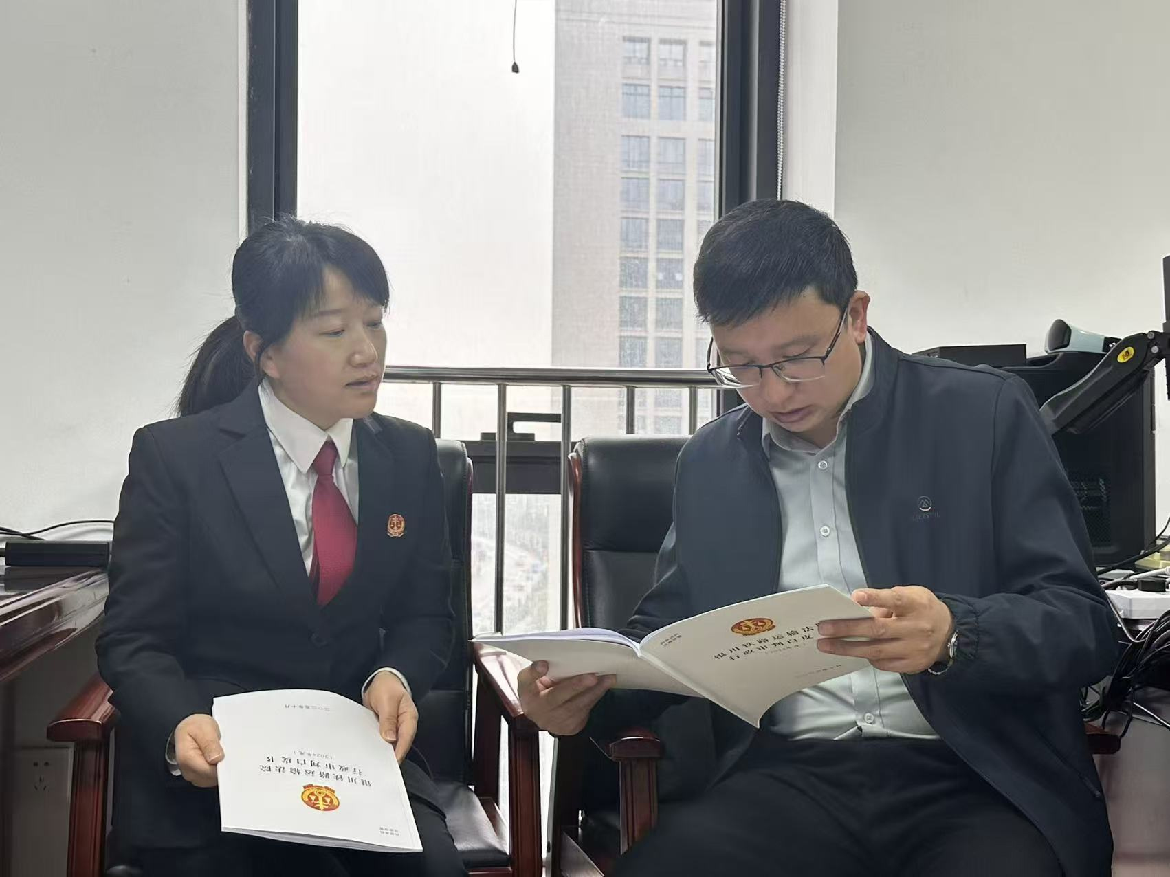 银川铁路运输法院行政审判庭法官胡小兵向西夏区政府办工作人员介绍白皮书内容
