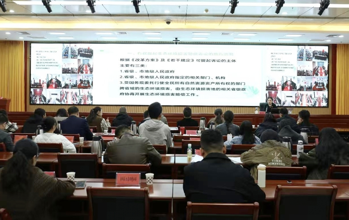 银川铁路运输法院环境资源审判庭三级法官魏亚楠在自治区生态环境厅授课