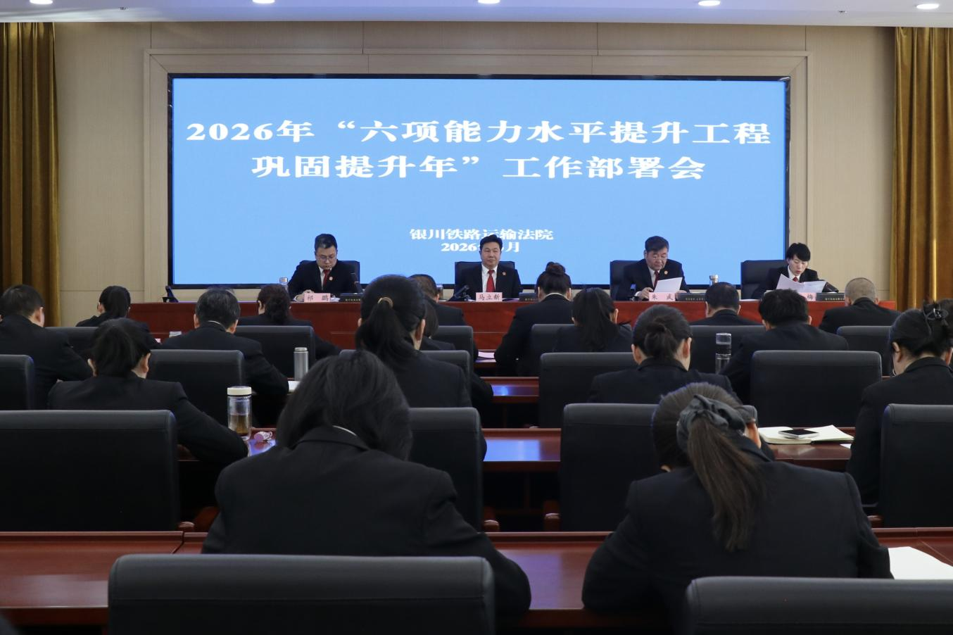 为深入贯彻落实全区法院院长会议精神,进一步统一思想、凝聚共识,确保全年工作高起点谋划、高标准推进,3月10日上午,银川铁路运输法院召开“六项能力水平提升工程巩固提升年”工作部署会,全体干警参加会议。