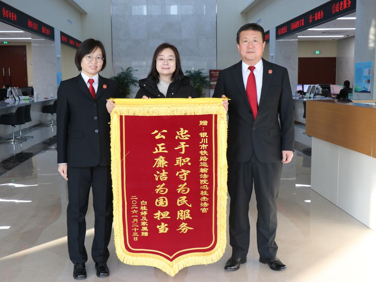 1月23日上午,银川铁路运输法院迎来了一份暖意融融的“礼物”——一面写有“忠于职守为民服务 公正廉洁为国担当”的锦旗。赠送锦旗的,是即将退休的教师白某,铁路法院曾经审理的一起工伤保险待遇纠纷案件的当事人。